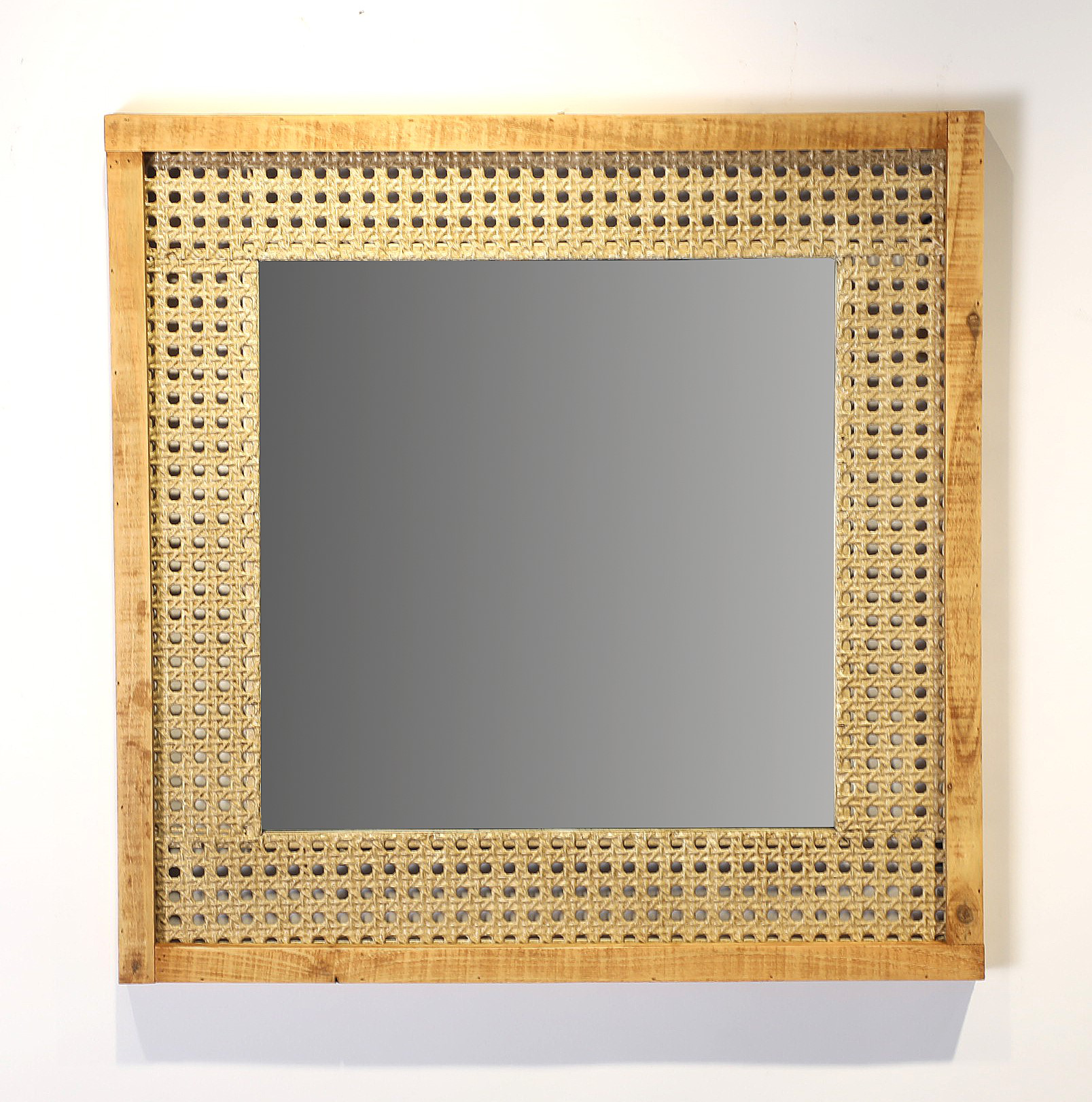 Bark Mirror c/w Wood & Rattan 57x57cm