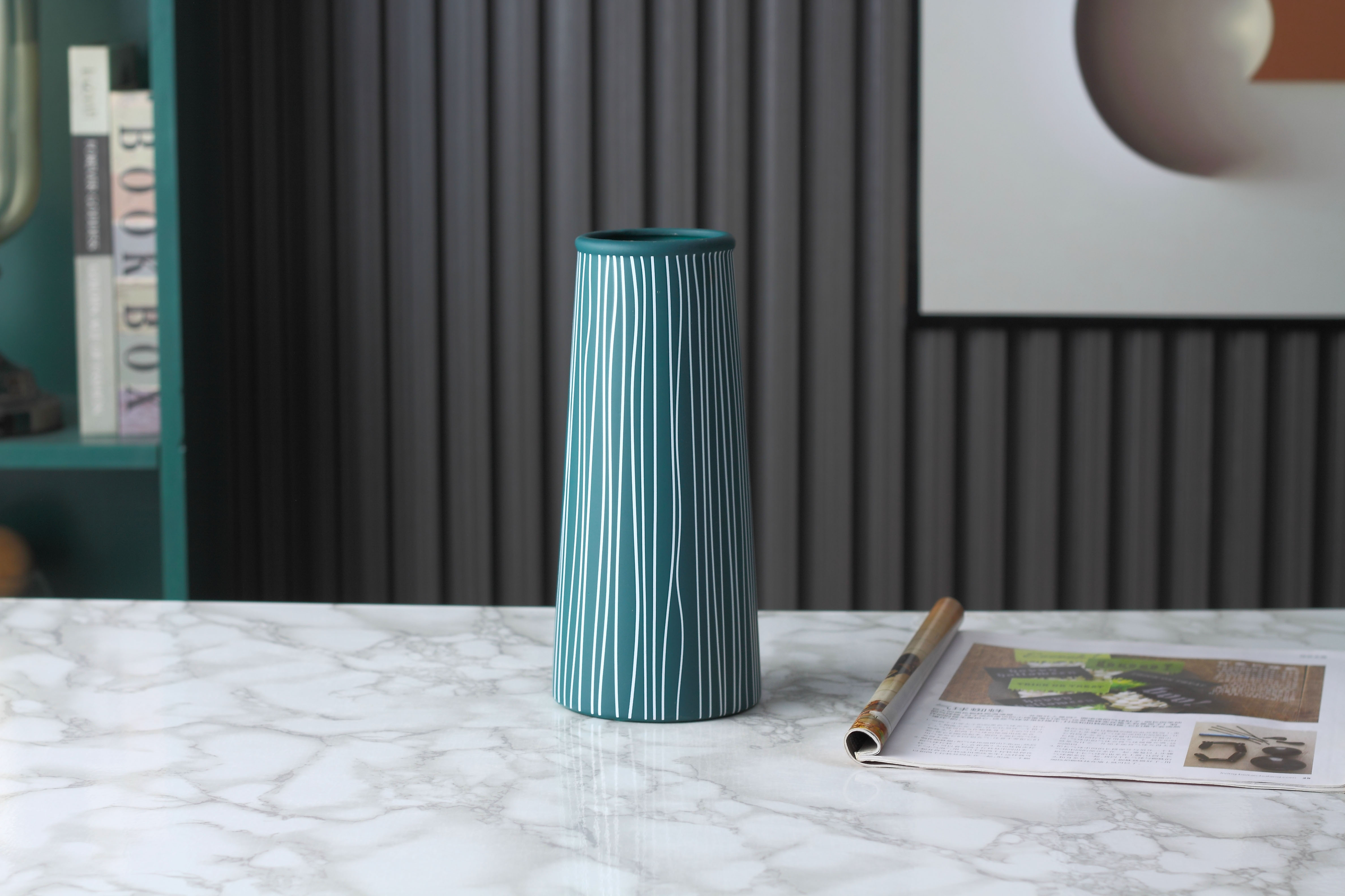 Be the first to review “Ceramic Vase Teal c/w White Stripes (M)”