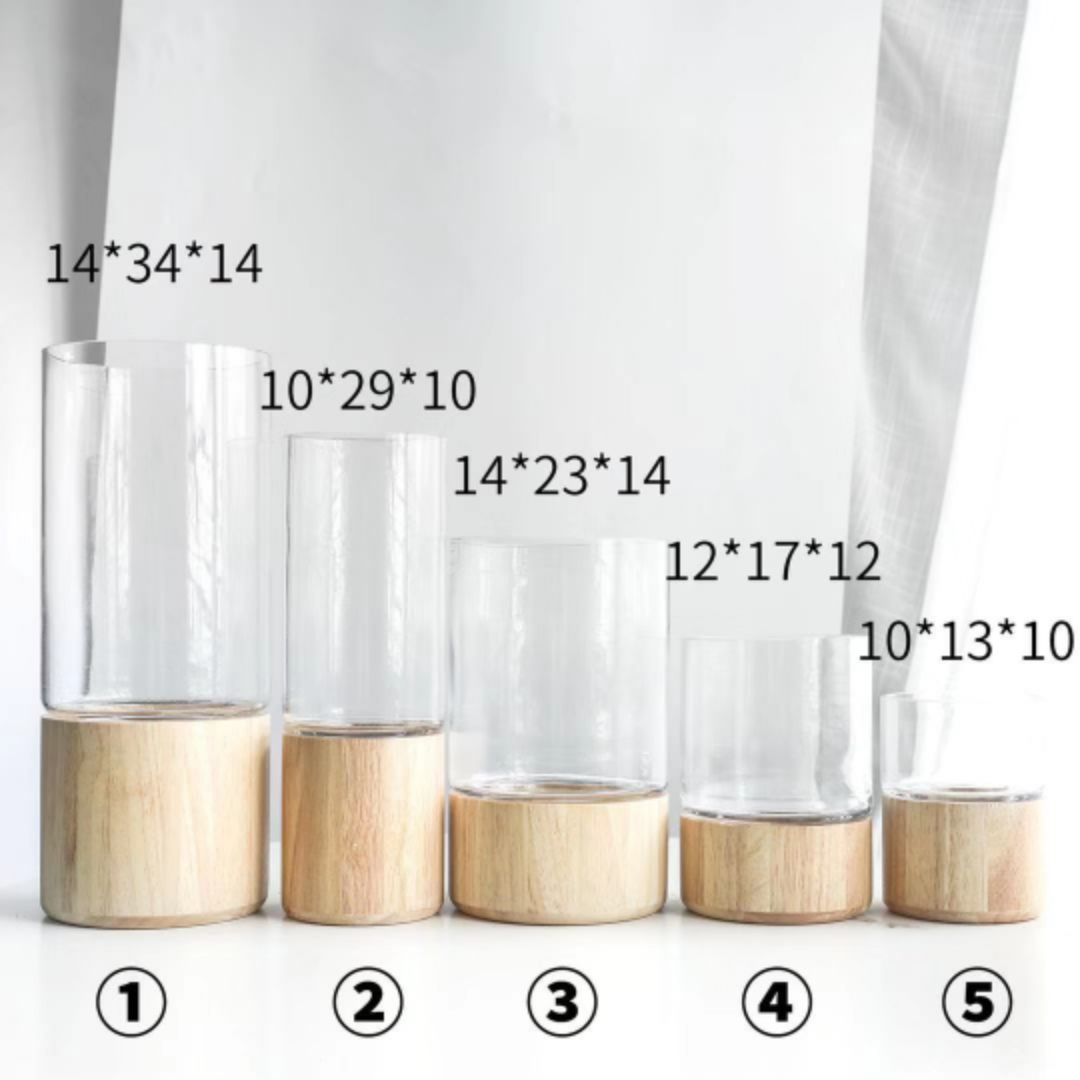 Classic Glass Vase c/w Nat.Wooden Base (S)